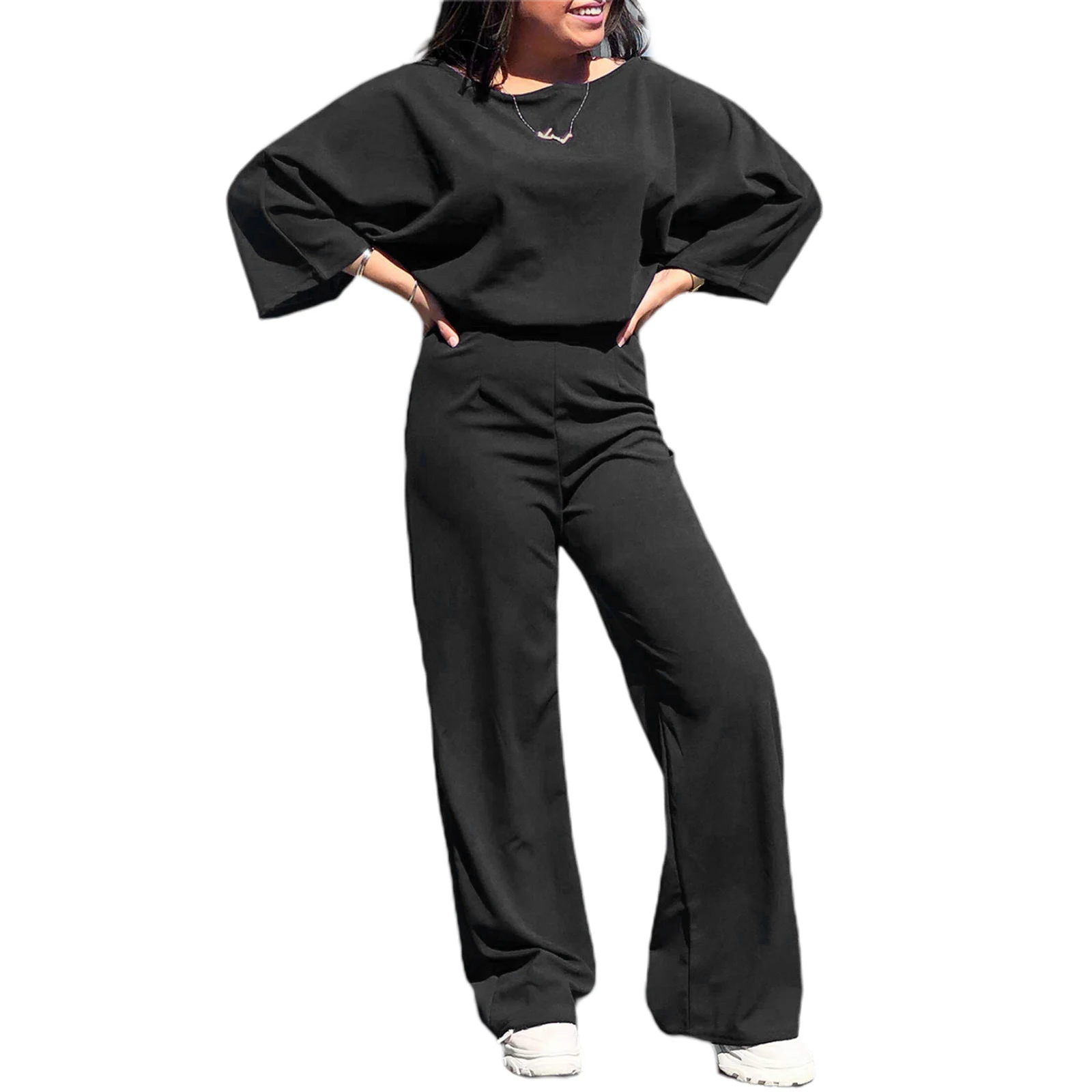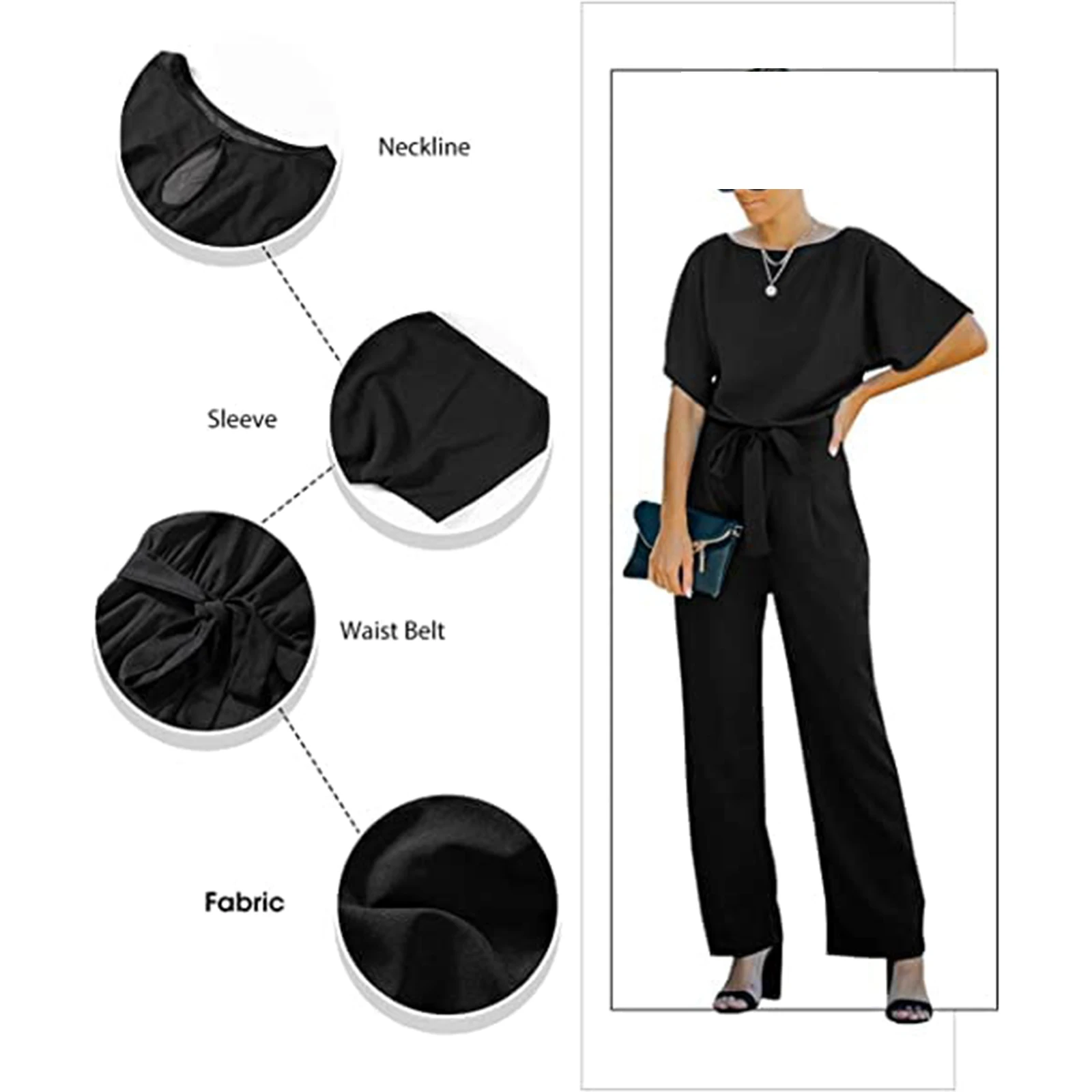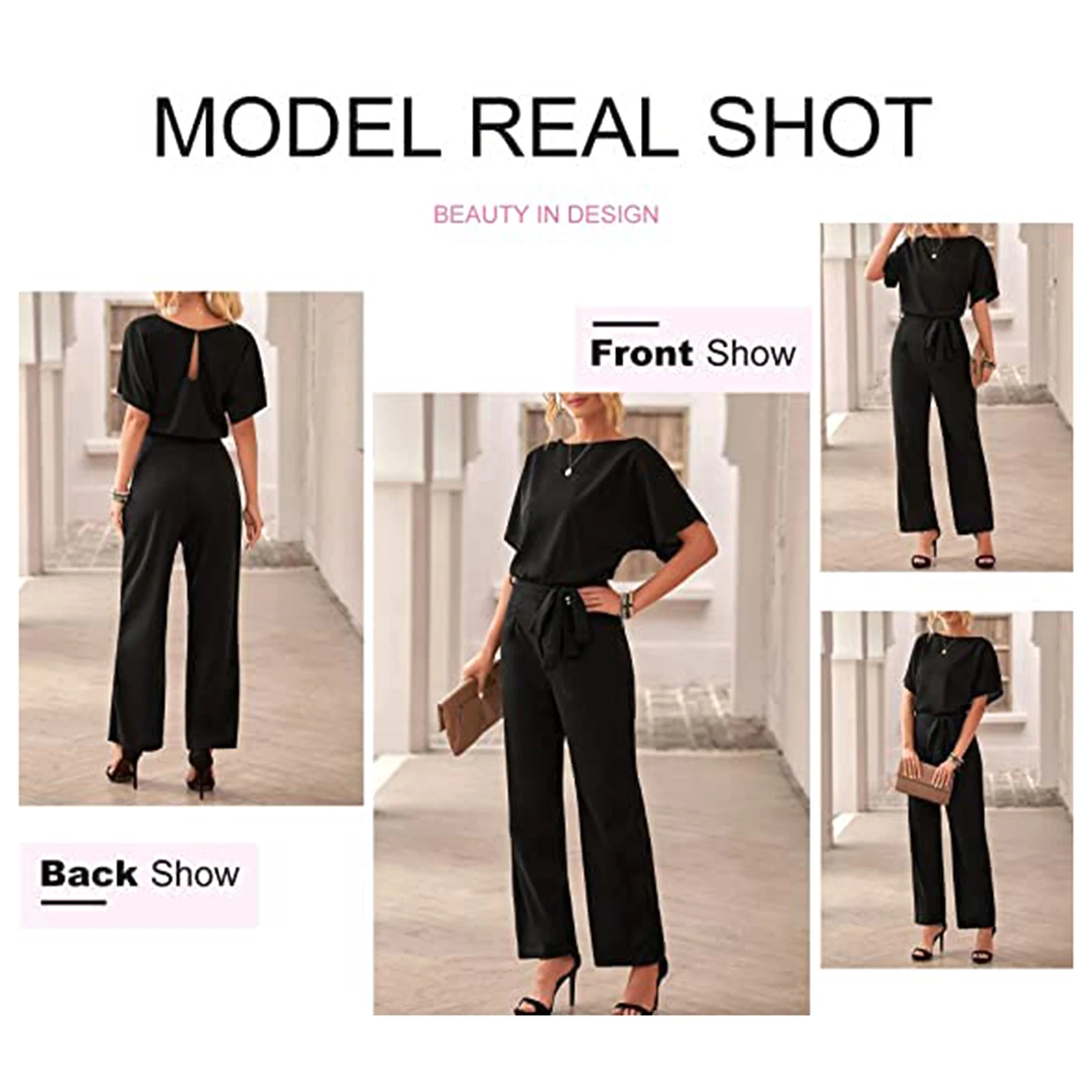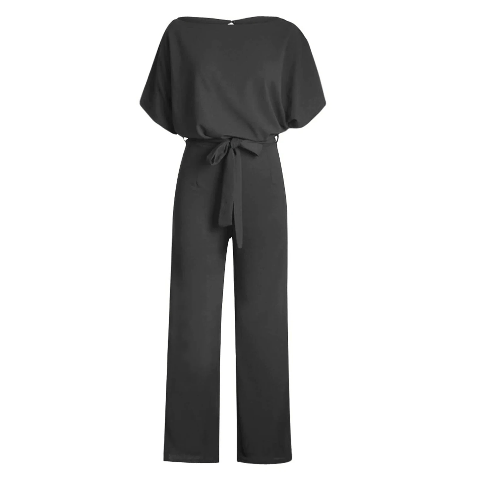 Women Daily Fashion Versatile Jumpsuit Sexy Solid Color Jumpsuit V-Neck Short Sleeve Open Back High Waist Elastic Loose Jumpsuit