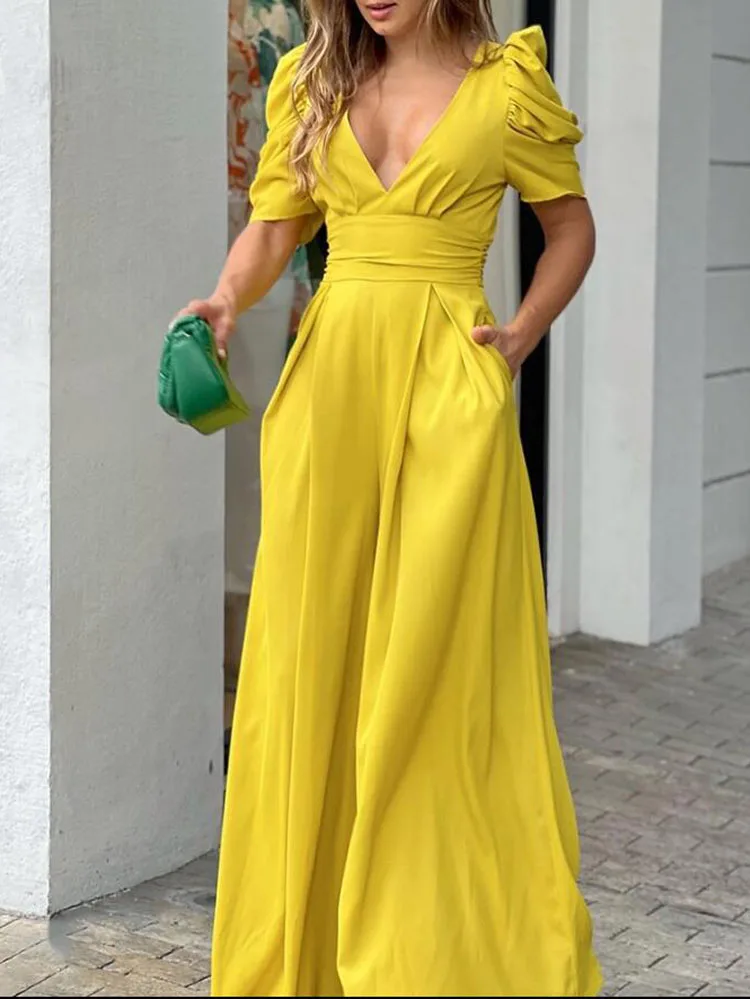 Women Elegant Solid Color High Waist Wide Leg Jumpsuit