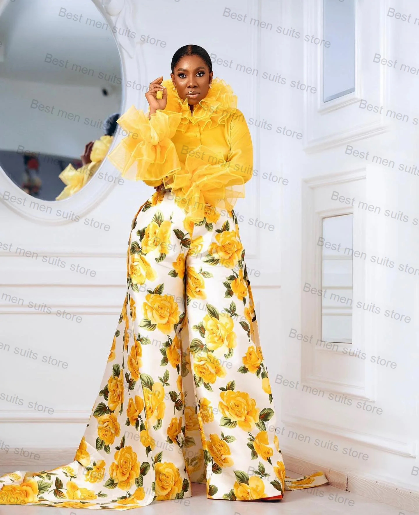 Women Pants Suit Set With Train2 Piece Blazer+Wide Leg Trousers Tuxedo Party Prom Dress Formal Office Lady Custom Made