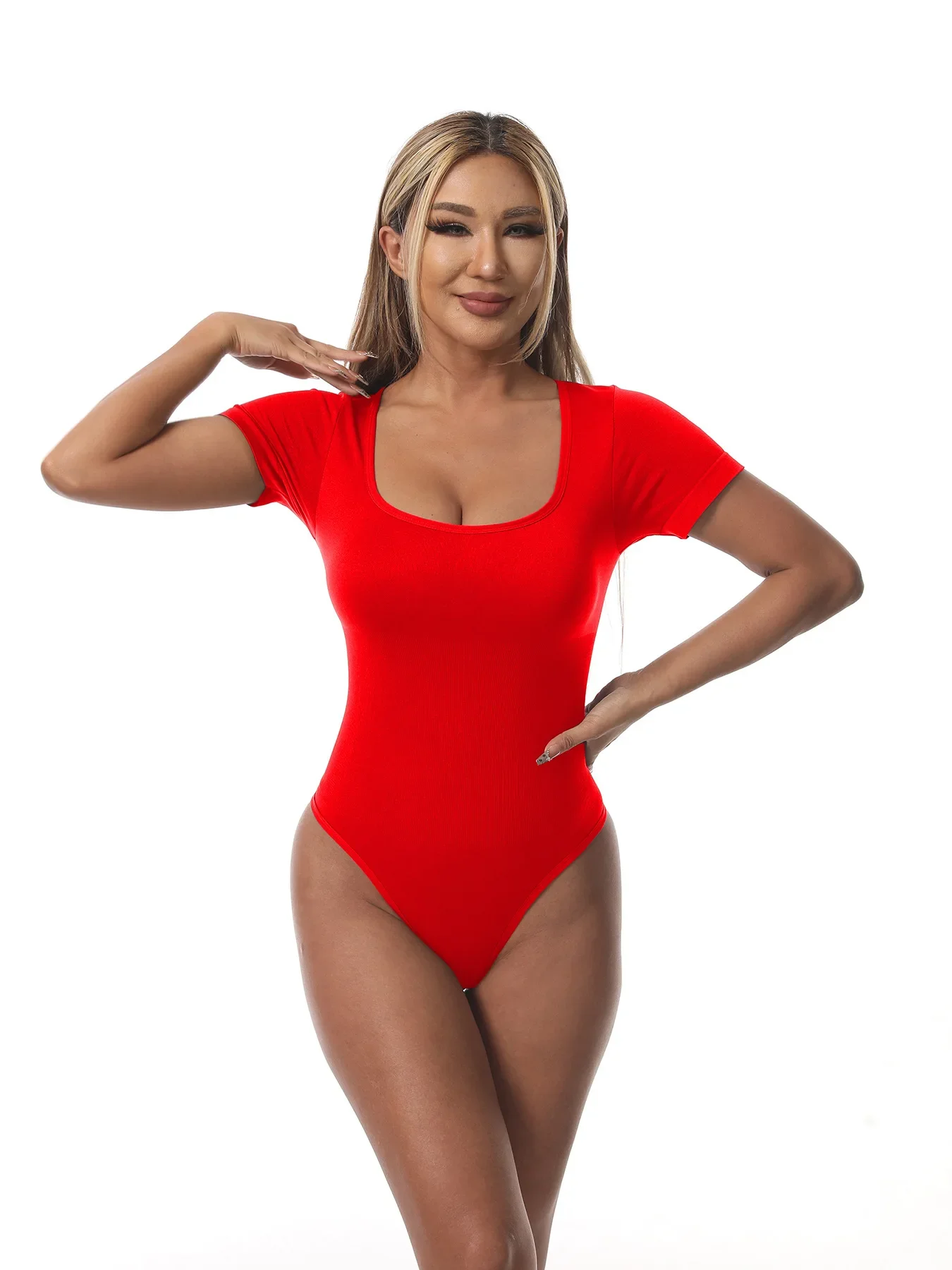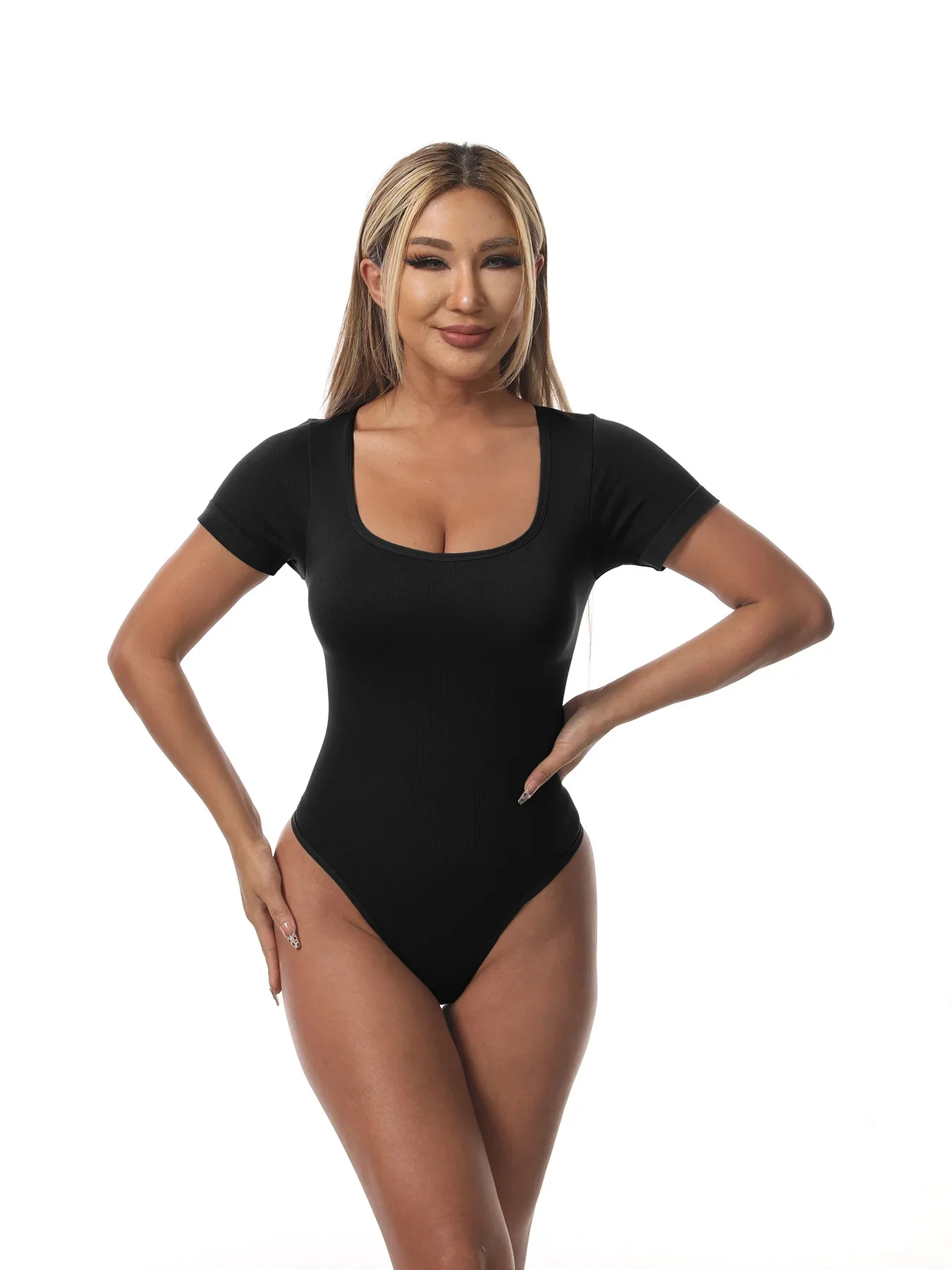 Women Plus Size Yoga Jumpsuit Seamless Square Neck T-shirt High Elastic Workout Running Sport Jumpsuit Solid Ribbed Jumpsuit Top
