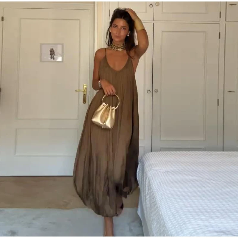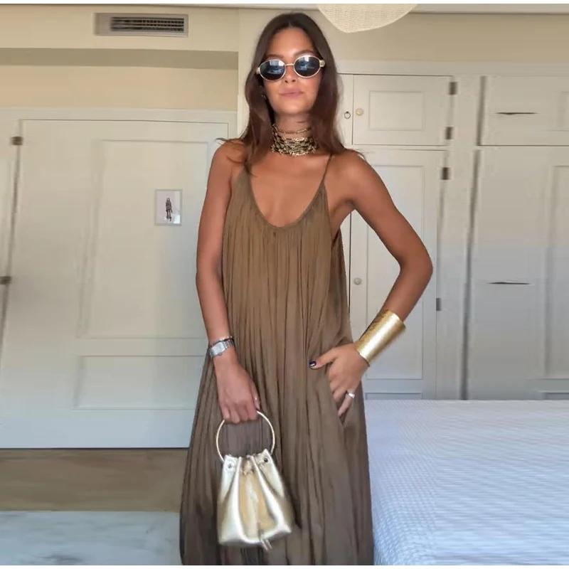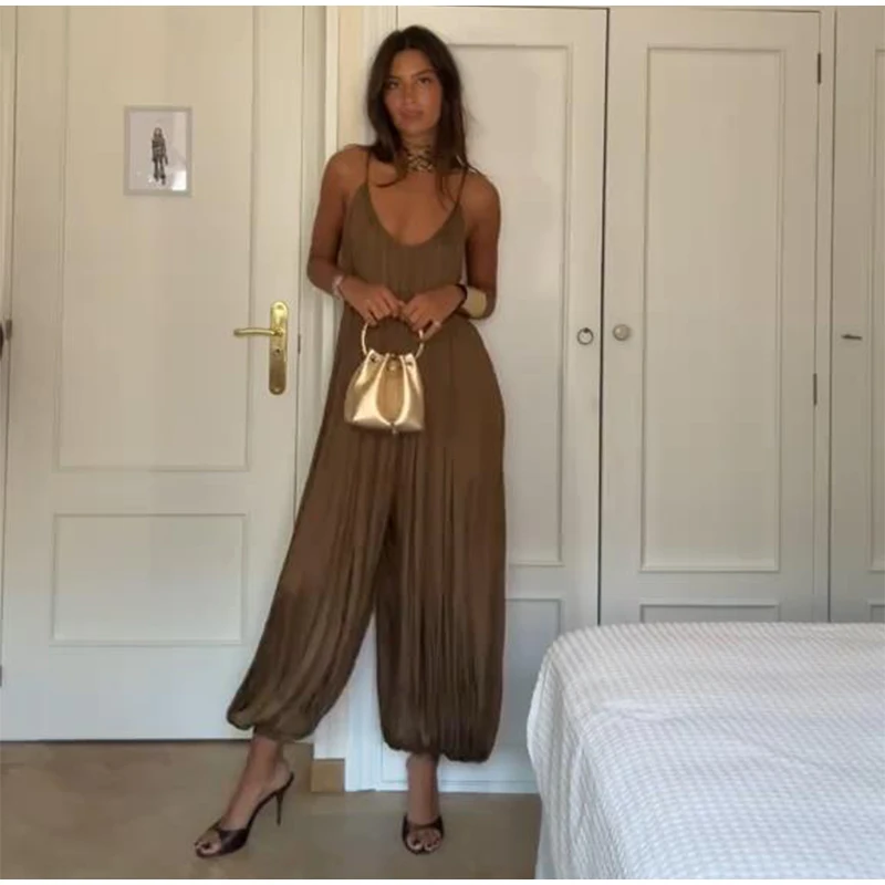 Women‘s Loose Slip Jumpsuits Overalls 2025 Summer V Neck Sleeveless Pocket Baggy Wide Leg Pants Fashion Female Street Playsuit