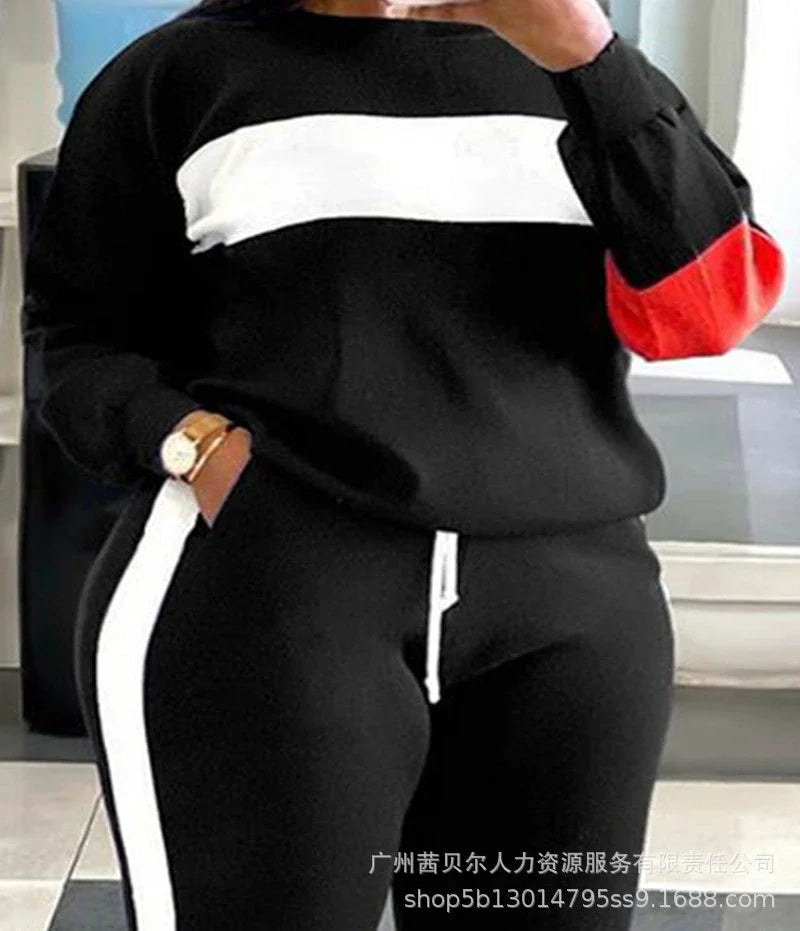 Women Two Piece Sets Print Pant Sets Long Sleeve Tops Plus Size Outfits Drawstring Y2k Trousers Sweatshirts Suits Work Spring