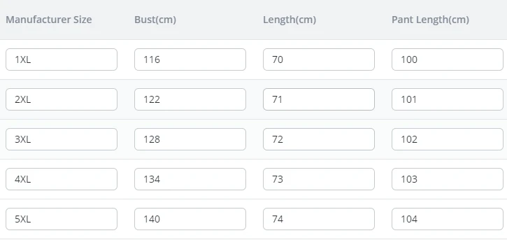 size_info: {"sizeInfoList":[{"length":{"cm":"116","inch":"45.67"},"size":"1XL","vid":-1},{"length":{"cm":"122","inch":"48.03"},"size":"2XL","vid":-2},{"length":{"cm":"128","inch":"50.39"},"size":"3XL","vid":-3},{"length":{"cm":"134","inch":"52.76"},"size":"4XL","vid":-4},{"length":{"cm":"140","inch":"55.12"},"size":"5XL","vid":-5}]}